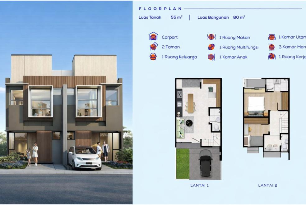 Dengan konsep bangunan yang compact namun tetap lapang, Izzi Type 5 menghadirkan suasana hunian yang hangat dan efisien untuk aktivitas sehari-hari. Setiap ruang dirancang untuk memaksimalkan pencahayaan alami dan sirkulasi udara sehingga menciptakan lingkungan tempat tinggal yang sehat dan nyaman.